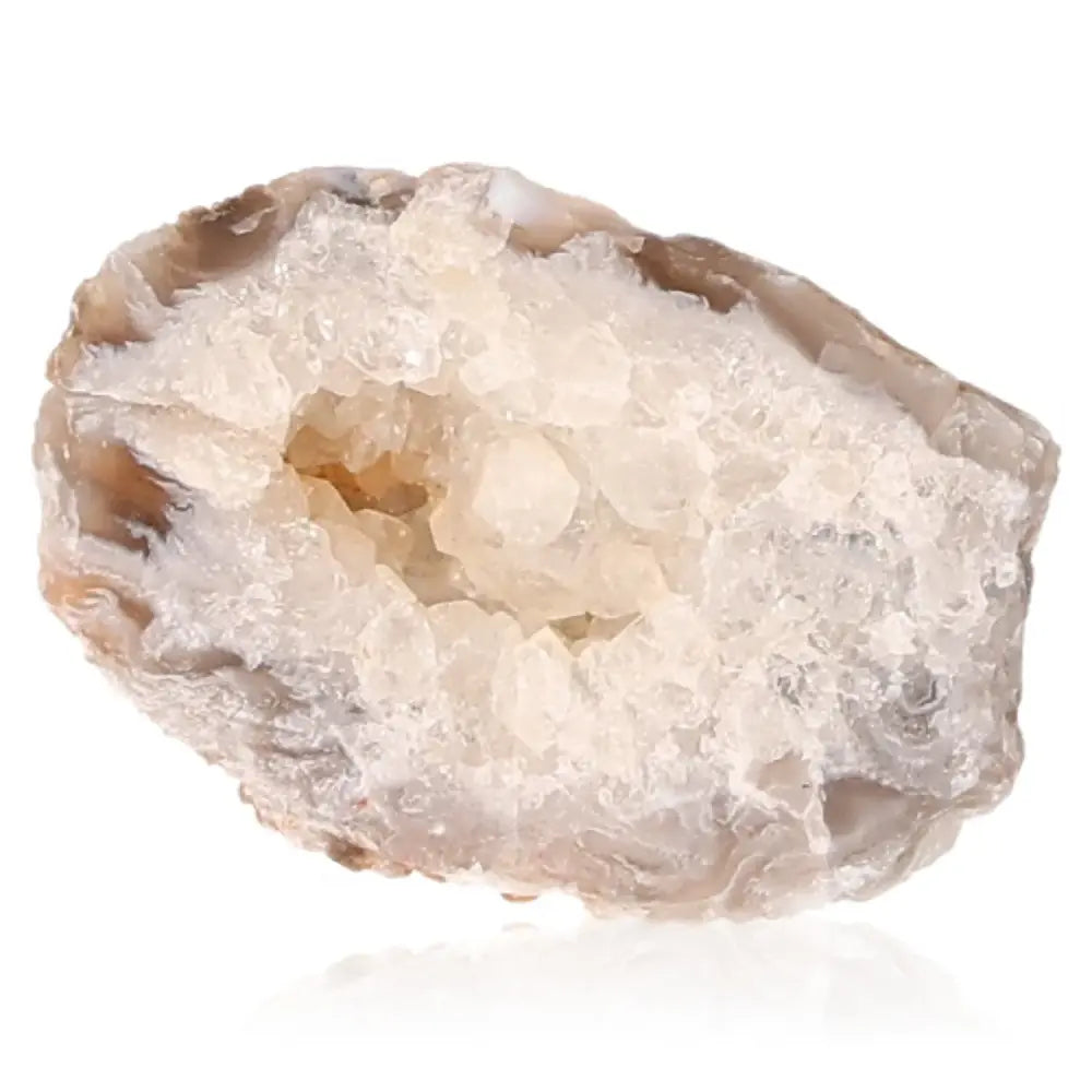Mini-Agatgeode Weiß und beige mit dezenten braunen Flecken.