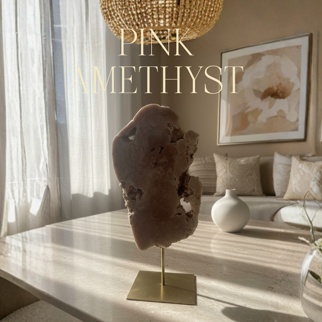 Amatista rosa en soporte de metal