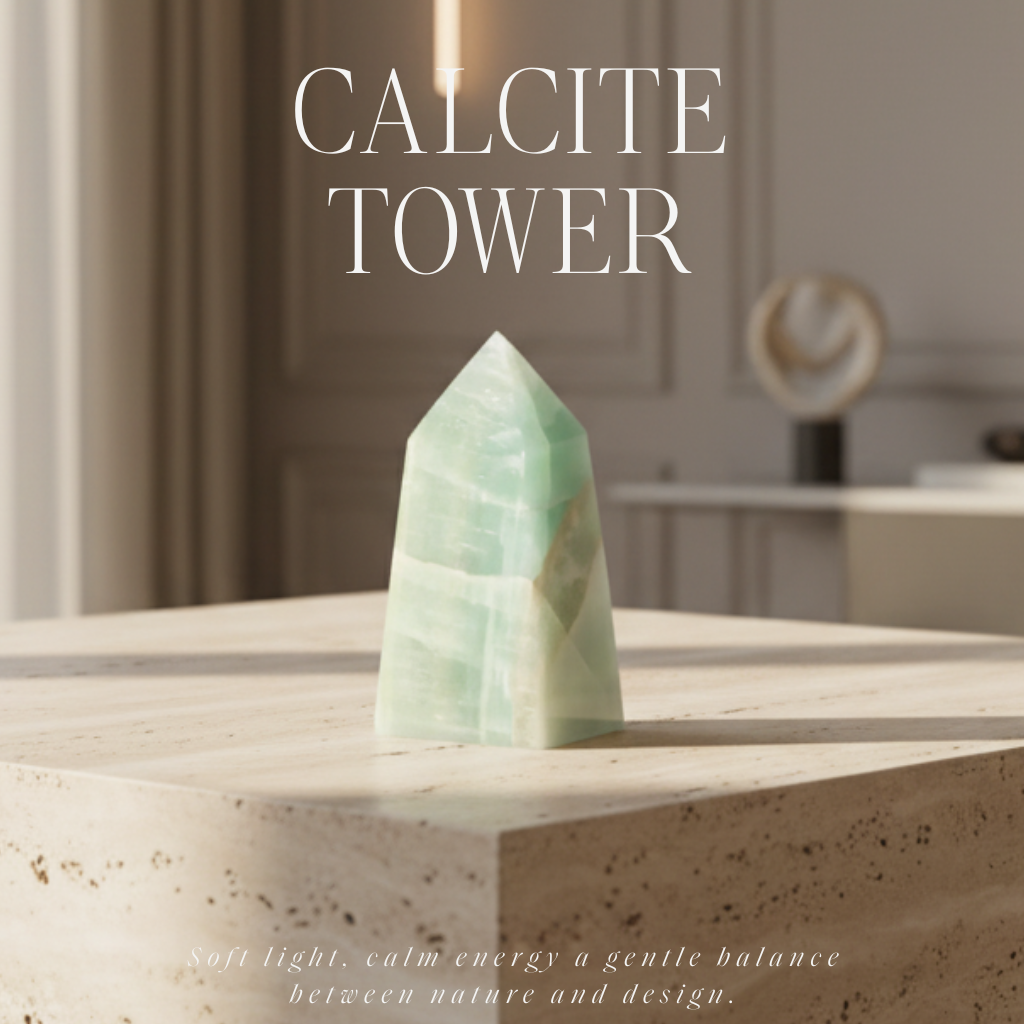 Pistachio Calcite Tower oferuje harmonijne połączenie naturalnego piękna i uspokajającej energii, co czyni go wszechstronnym dodatkiem do Twojej kolekcji kryształów lub wystroju wnętrza. Niezależnie od tego, czy szukasz spokoju, równowagi, czy oszałamiającego elementu dekoracyjnego, ta wieża jest ponadczasowym wyborem.