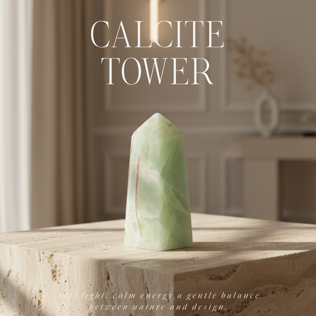 Pistachio Calcite Tower oferuje harmonijne połączenie naturalnego piękna i uspokajającej energii, co czyni go wszechstronnym dodatkiem do Twojej kolekcji kryształów lub wystroju wnętrza. Niezależnie od tego, czy szukasz spokoju, równowagi, czy oszałamiającego elementu dekoracyjnego, ta wieża jest ponadczasowym wyborem.